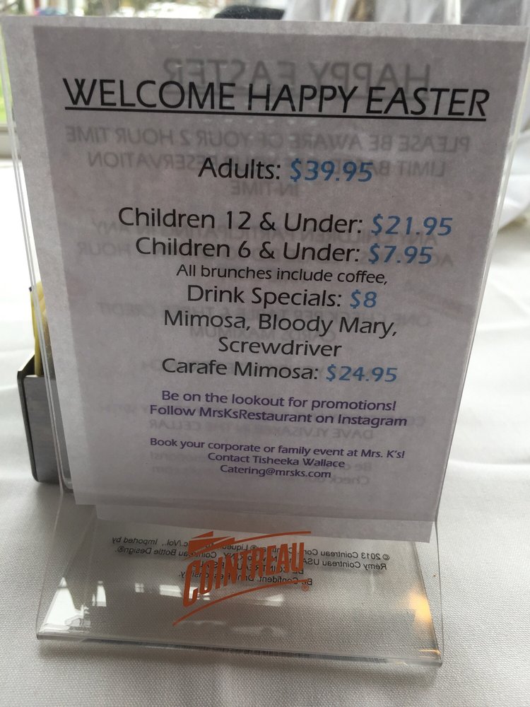 Introducing Mrs K's Restaurant & Cellar, a wine bar offering a unique dining experience in Silver Spring, MD. Known for its intimate and classy ambiance, Mrs K's boasts a variety of amenities such as outdoor seating, wheelchair accessibility, and a full bar. The menu features a range of American dishes with vegan options, catering to diverse tastes. Customer reviews rave about the perfectly cooked lamb chops, flavorful seafood pasta, and indulgent Smith Island cake. The picturesque establishment includes a cellar dining area with a live music option and an extensive wine selection. While parking may be limited, the scenic surroundings and cozy decor make for a memorable dining experience. Whether for brunch or a special evening out, Mrs K's Restaurant & Cellar promises a delightful culinary adventure infused with charm and sophistication.