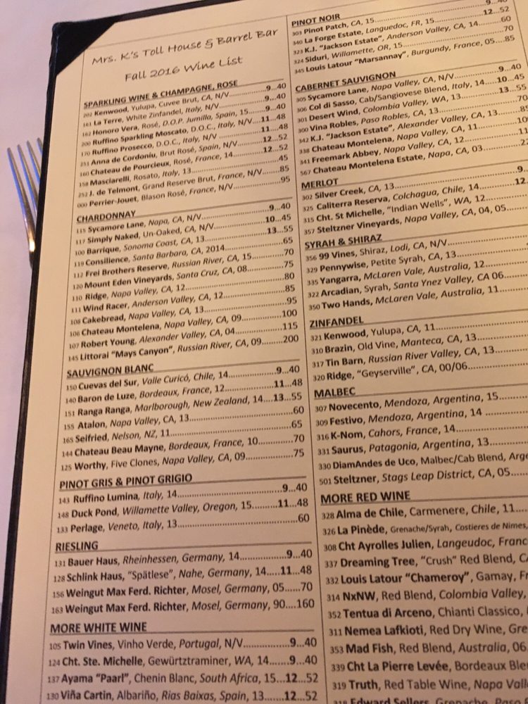 Mrs K's Restaurant & Cellar Menu (Update 2025)